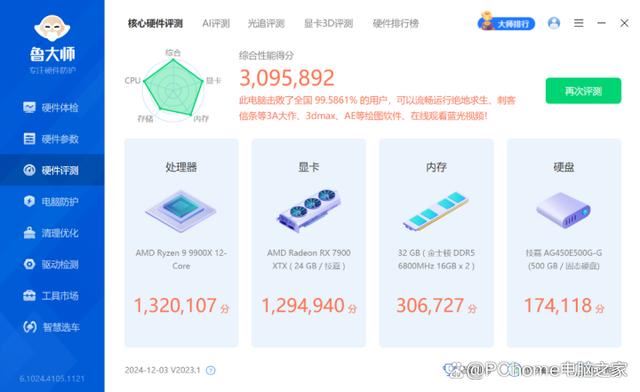 从上面各个部分的测试来看,整台平台的性能自然不言而喻,鲁大师硬件评测中获得超过309万分的成绩,其中处理器132万分,显卡129万分,内存30万分,轻松击败全国99%的电脑。