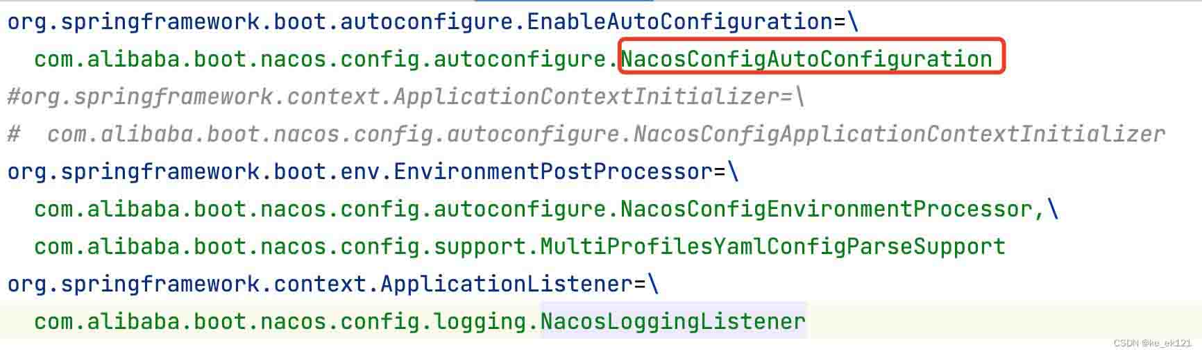 </dependency>看看对应的meta-inf/spring.factories,这里我们主要研究nacosconfigautoconfiguration