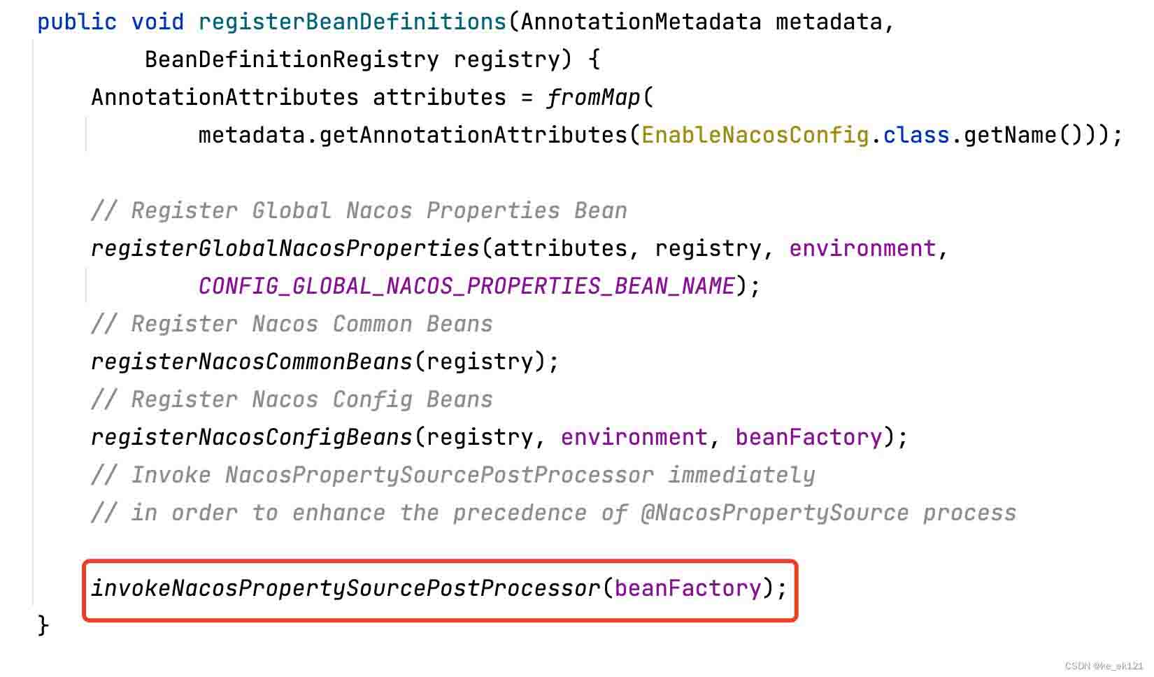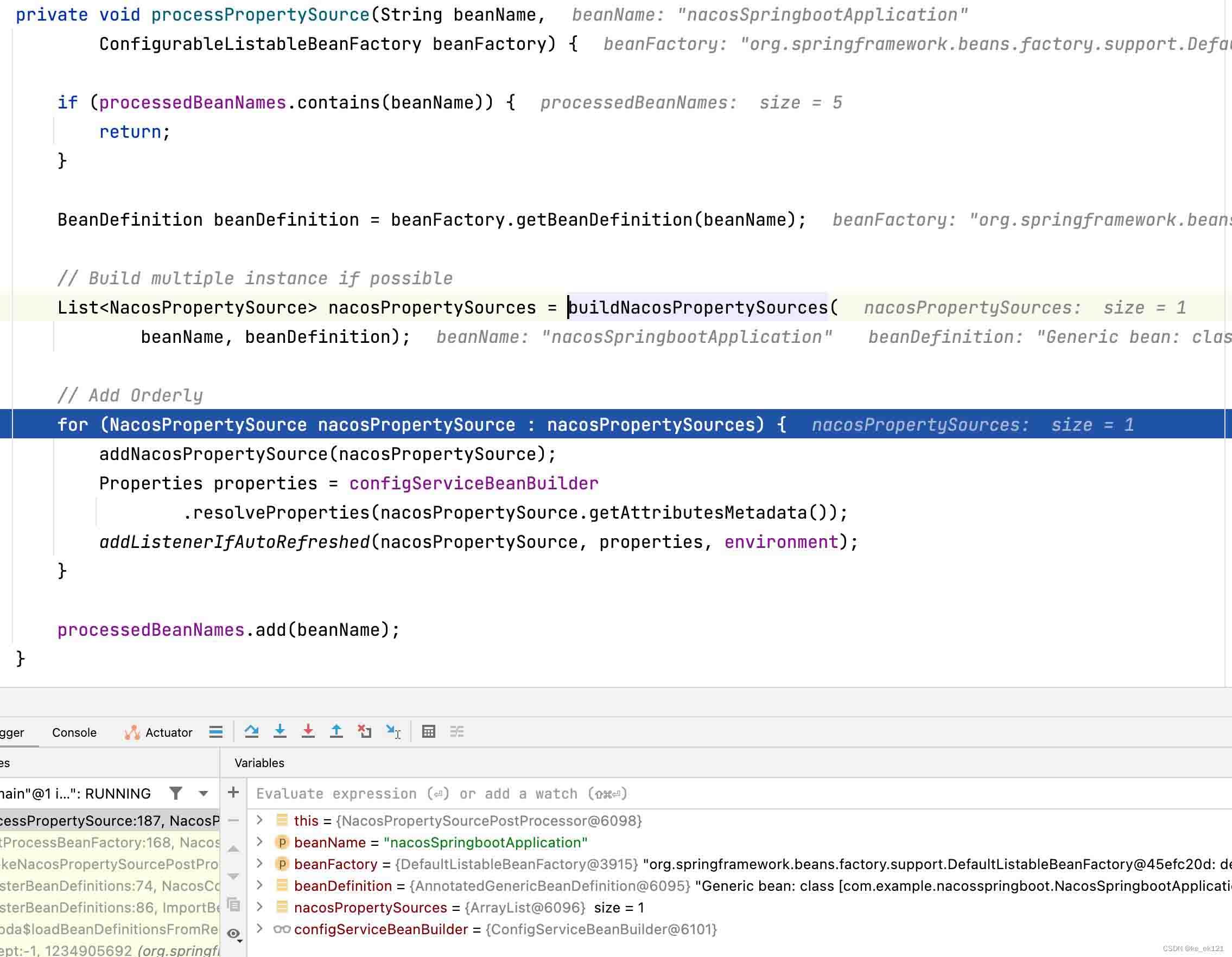 然后invokenacospropertysourcepostprocessor调用