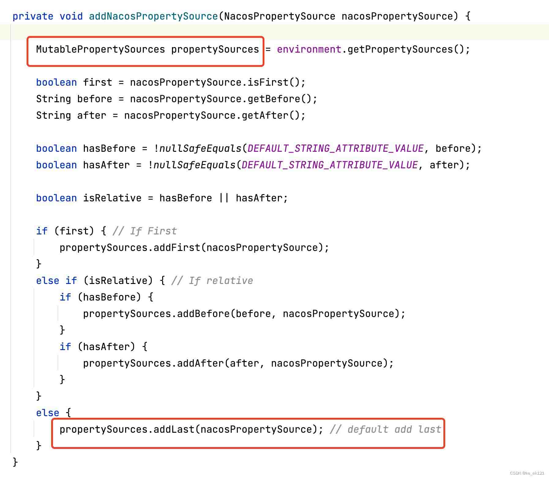 首先调用addnacospropertysource添加到environment