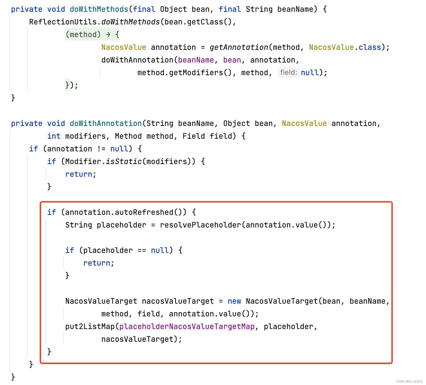 经过上面的处理,将autorefreshed为true的目标加入到placeholdernacosvaluetargetmap中去。