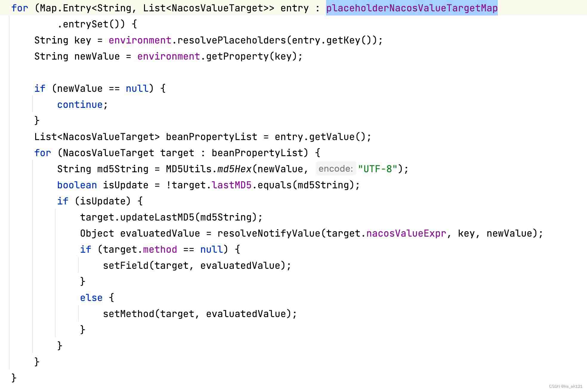 简单说呢,就是遍历上面的placeholdernacosvaluetargetmap进行一个值的更新。