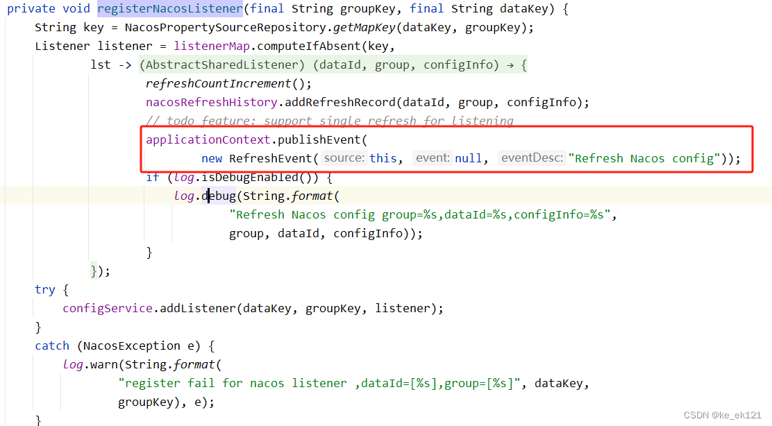注册监听器,监听nacos配置变化,并发布refreshevent