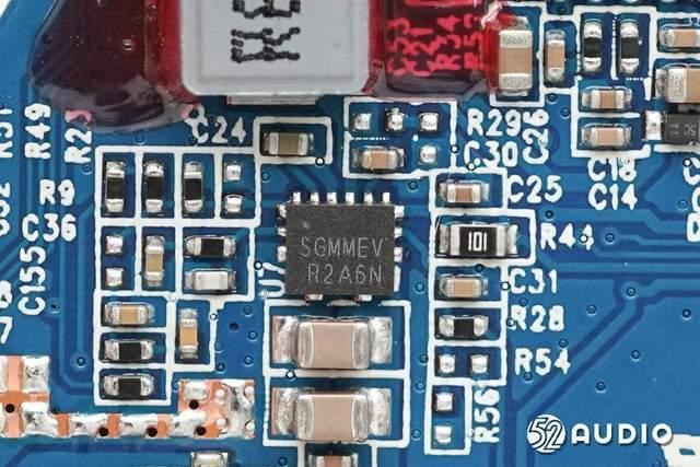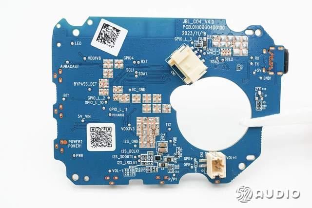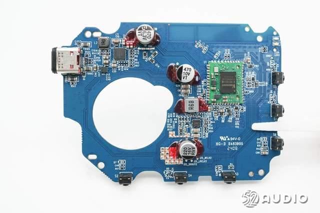 音箱主板另外一侧电路一览,无线通讯模组采用了绿色邮票板设计。