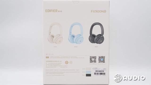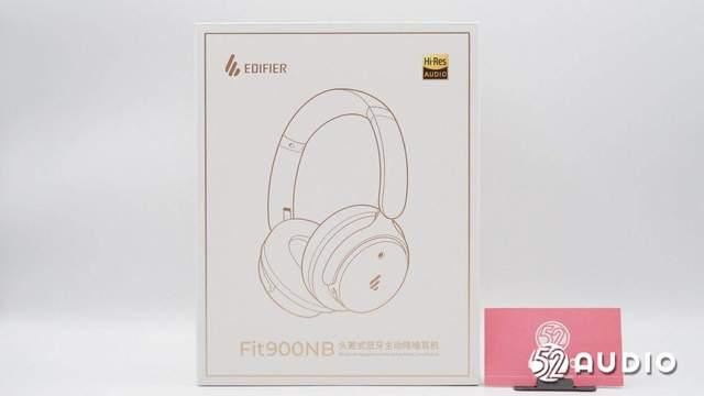 edifier漫步者fit900nb头戴式降噪耳机包装盒采用了新一代的设计风格,正面展示有产品的简笔图,品牌logo和产品名称,以及hi-res audio金标认证。