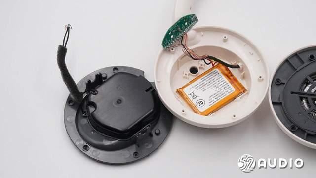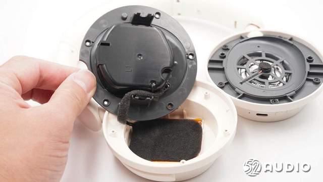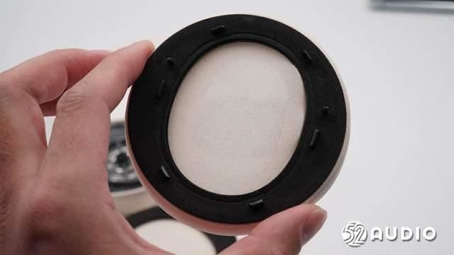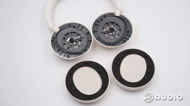 耳罩内侧结构一览,覆盖有海绵垫缓冲,提升听音的舒适性。