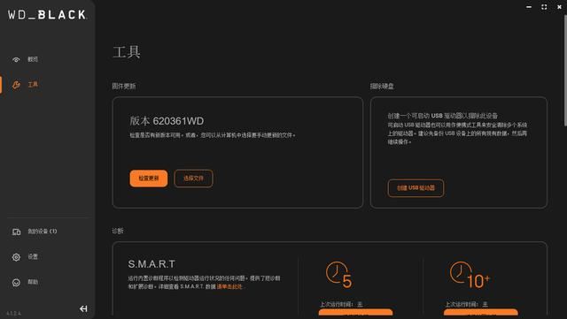 而且,我们还可以在western digital dashboard中进行ssd固件版本的检查与更新等操作。