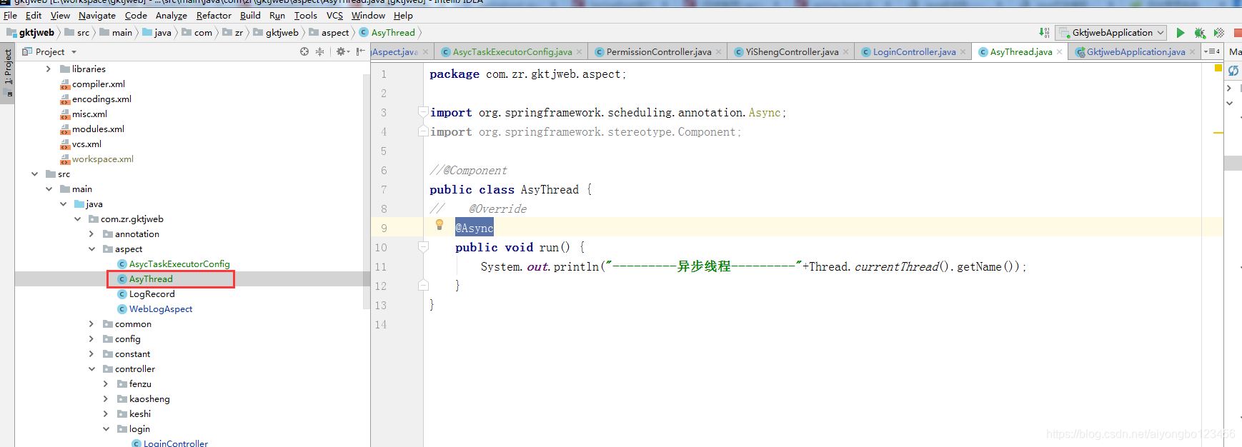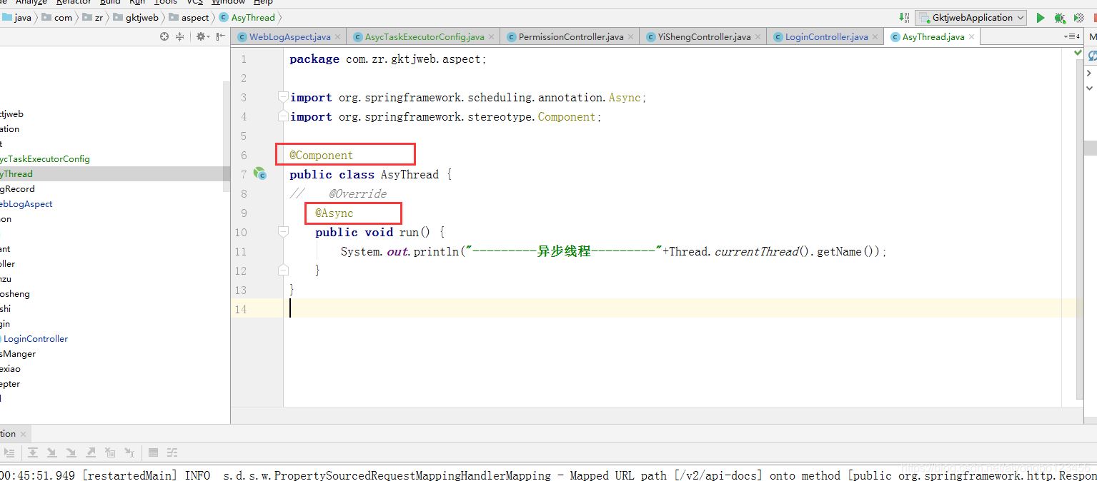 注入到controller层。通过spring生成的bean来调用异步方法: