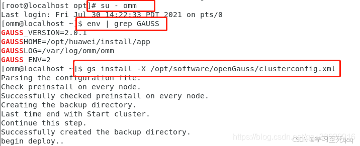 ./gs_preinstall -u omm -g dbgrp -x ./clusterconfig.xml