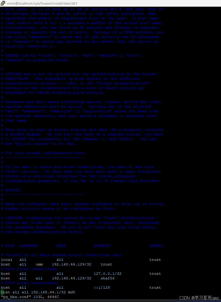 vim /gaussdb/data/db1/pg_hba.conf