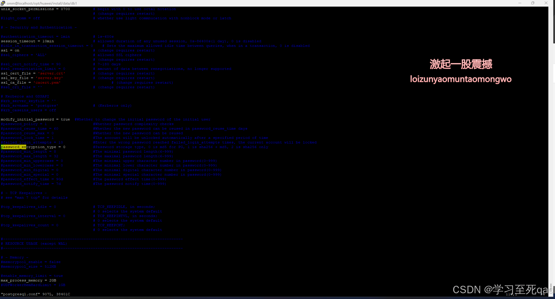 vi /gaussdb/data/db1/postgresql.conf