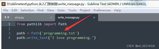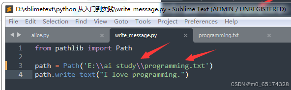 在这里,文件“programming.txt"和文件”write_message.py"在同一个文件夹中,如图