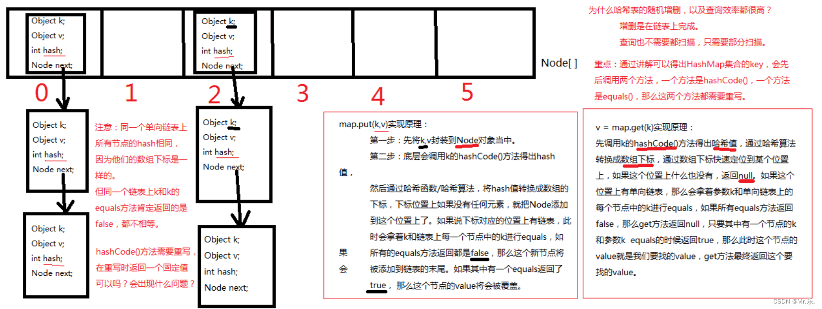 假设有100个元素,10个单向链表,那么每个单向链表上有10个节点,这是最好的, 是散列分布均匀的。假设将所有的hashcode()方法返回值都设定为不一样的值,可以吗,有什么问题? 不行,因为这样的话导致底层哈希表就成为一维数组了,没有链表的概念了。 也是散列分布不均匀。散列分布均匀需要你重写hashcode()方法时有一定的技巧。