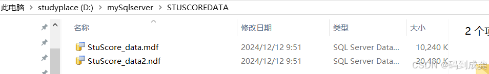 文件组stuscoregroup中的次要数据文件stuscore_data2.ndf在磁盘上的存储位置👇: