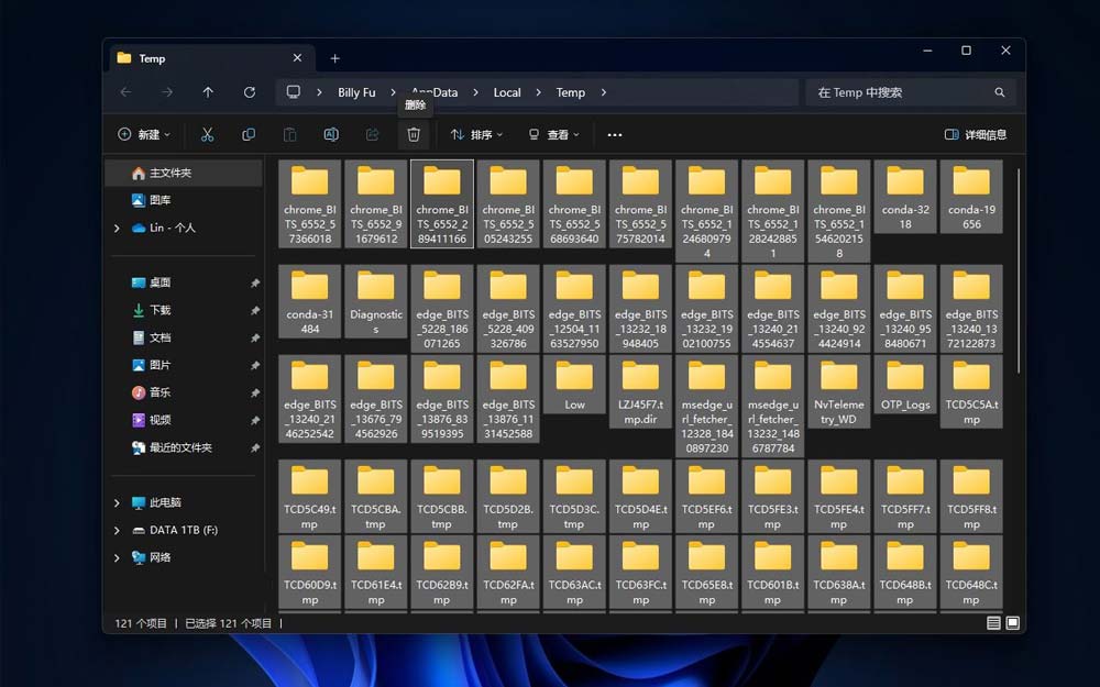 临时文件的堆积会直接影响「文件资源管理器」的性能,因此建议定期进行清理: