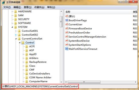3、进入“注册表编辑器”页面后,按序打开以下文件夹打开“hkey_local_machine-system-currentcontrolset-control”。
