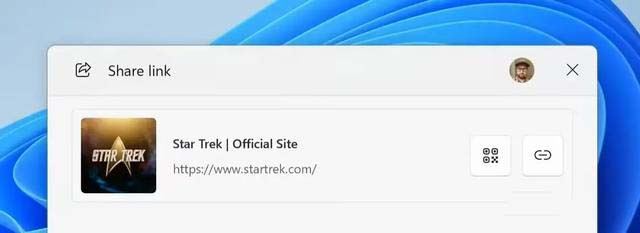 用户使用 windows 分享窗口分享链接或网页内容时,可以看到预览内容。