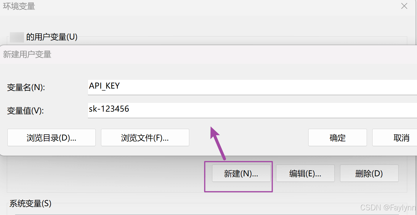 本文以“api_key=sk-123456”为例,将其配置到环境变量中,再通过python代码在程序中引用