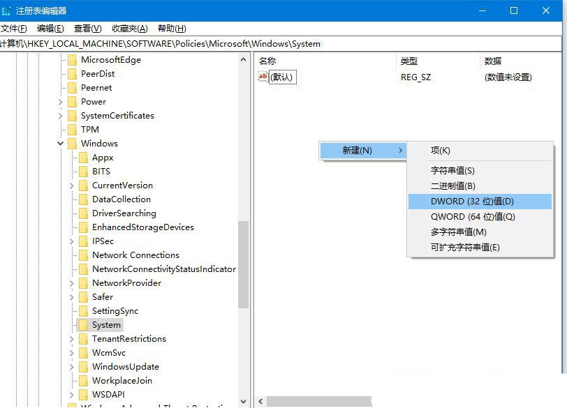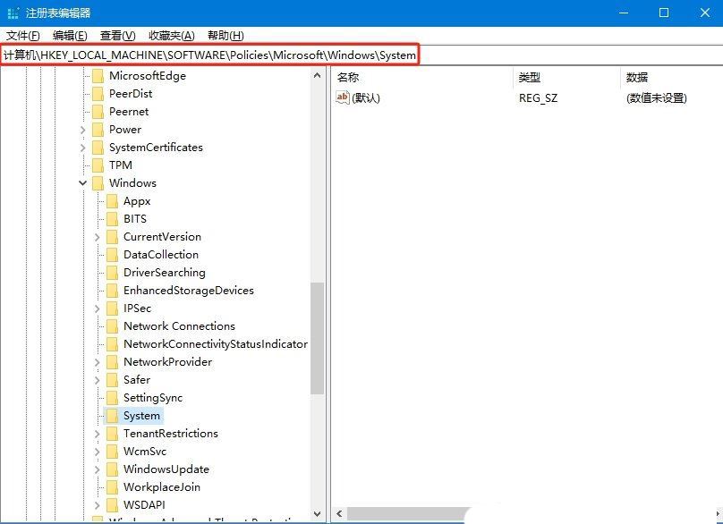 2、接着,在打开的界面中,依次点击展开“hkey_local_machine/software/policies/microsoft/windows/system”。