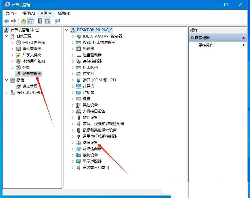 2、接着,在打开的界面中,点击左侧的“设备管理器”,再展开对应右侧的“图像设备”。