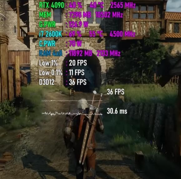 另外一方面,core i7-2600k的短板非常明显,在大多数游戏中,只能发挥出geforce rtx 4090约40%左右的性能,这是制约游戏性能最大的瓶颈所在。