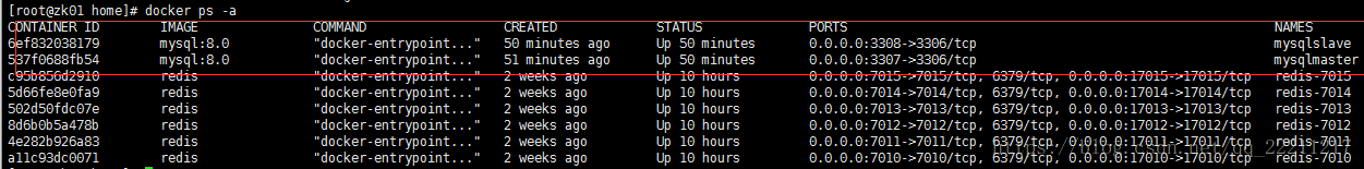 docker create --privileged=true #为容器挂载目录添加权限 --name mysqlmaster #容器名为mysqlmaster -v /home/data/mysql/data/master:/var/lib/mysql #集群配置集中/data/master 挂载到容器/var/lib/mysql -v /home/data/mysql/master:/etc/mysql/conf.d #配置集中/master 中master.cnf 挂载到 /etc/mysql/conf.d中设置启动 -e mysql_root_password=root #设置启动密码 --net mysql_net #指定容器连接网络 --ip 172.25.0.3 #指定容器使用ip -p 3307:3306 mysql:8.0 #指定主机映射到容器端口 即 主机访问centos7 为3307 容器端口为3306