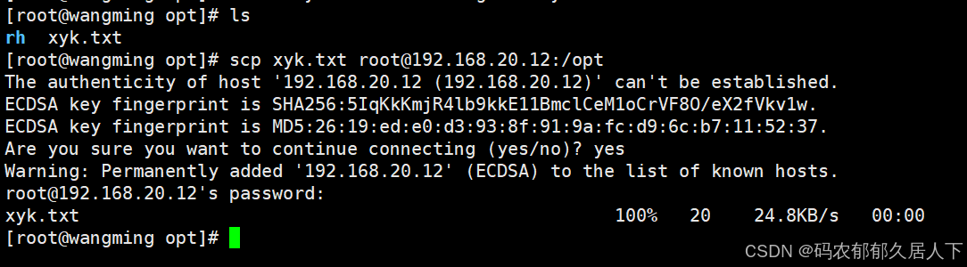 scp:scp是secure copy的简写(安全性复制),用于在linux下进行远程拷贝文件的命令,而且scp传输是加密的。