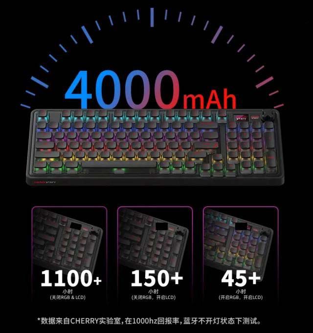 樱桃 pixiu98 内置 4000mah 电池,标称续航最高约 1100 小时,支持 2 年质保。