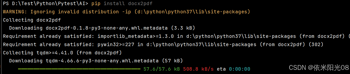 要实现这样的功能,需要用到的就是 docx2pdf 这个python第三方库。对于docx2pdf 库的安装,可以利用下述的pip命令进行安装。