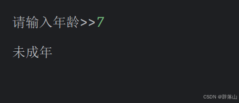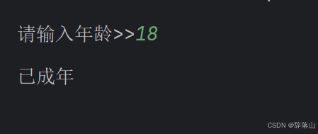 1、从键盘输入年龄,判断是否大于等于18岁,如果满足就输出“已成年”。