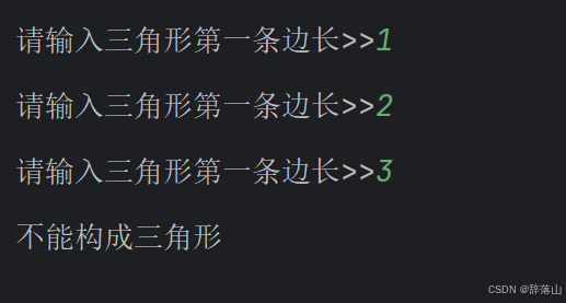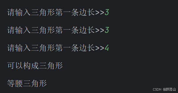 7、从键盘输入三角形的 三个边长 判断能否构成三角形,如果能 输出能构成三角形 再输出是什么三角形 等边 等腰 直角 普通 如果不能 输出不能构成三角形