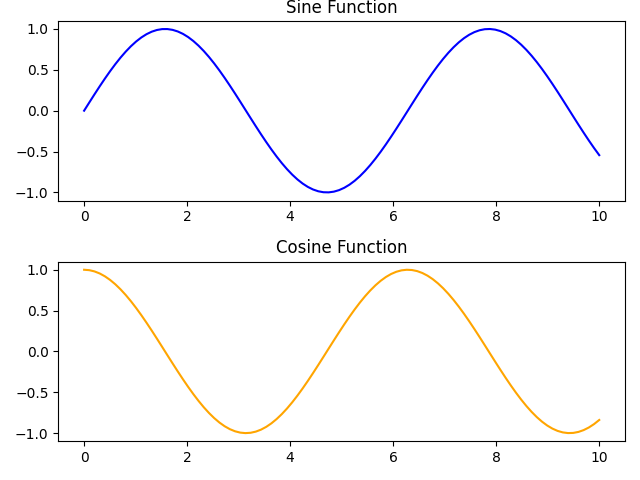 axs[1].plot(x, y2, label='cos(x)', color='orange')