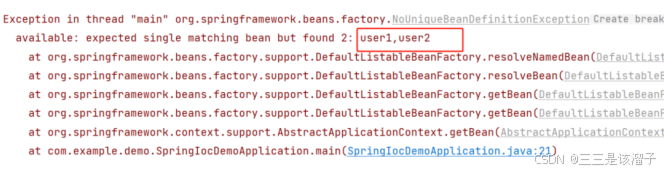 } 报错信息显⽰:期望只有⼀个匹配,结果发现了两个,user1,user2
