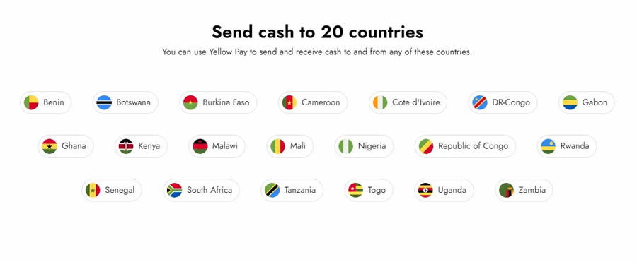 目前,yellow card 在尼日利亚、南非、肯尼亚、喀麦隆、坦桑尼亚和博茨瓦纳等国家均可使用。