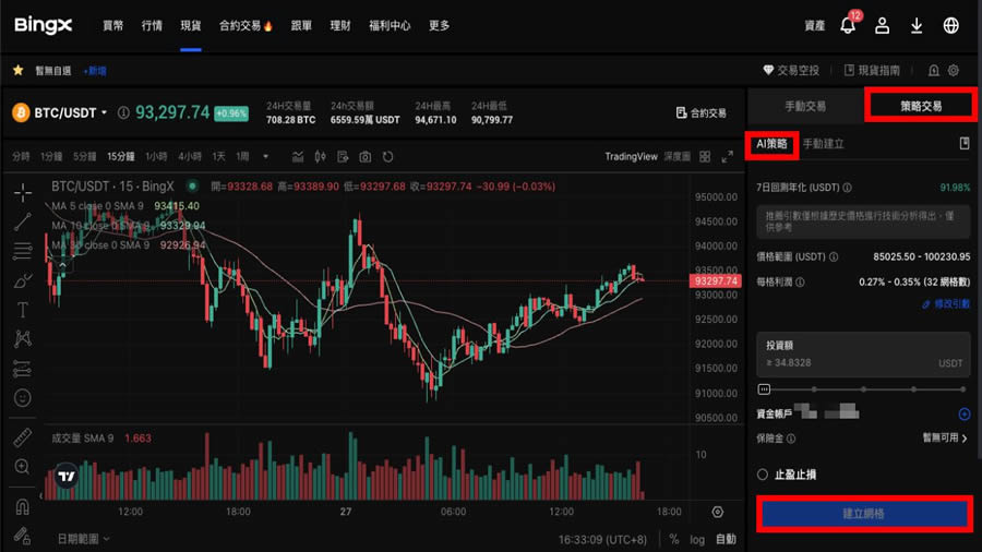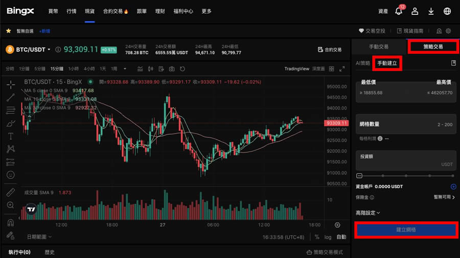 bingx 的网格交易功能非常适合新手,透过「一键创建」即可轻松上手;而进阶用户则可以利用手动设置,根据市场走势进行更灵活的操作。