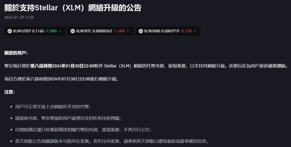 如果当下币安钱包正在维护中,会暂停某些链的提现,这通常会有公告讯息,等一段时间就会恢复。