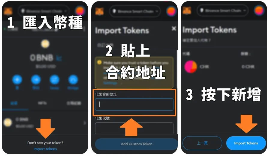 metamask 新增代币三步骤:
