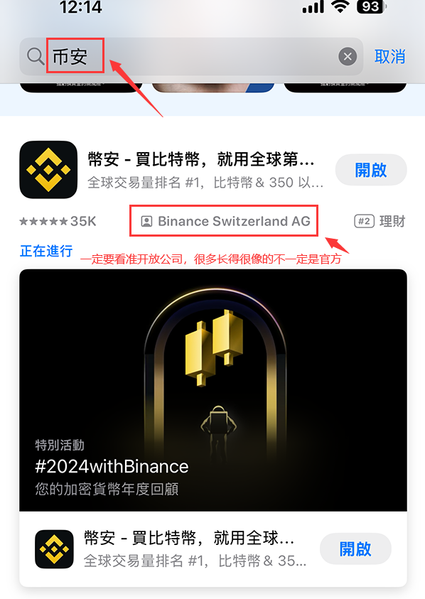 前往 app store 搜索 "binance" 并下载。