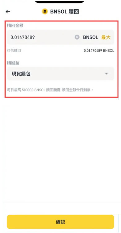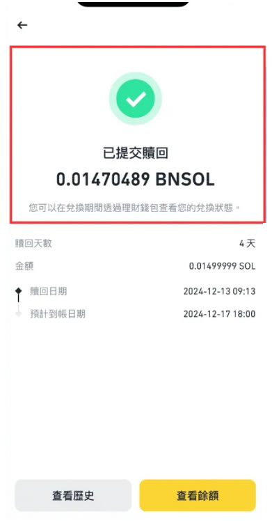 如果你今天不想要继续在币安上面质押sol,你可以把他赎回。