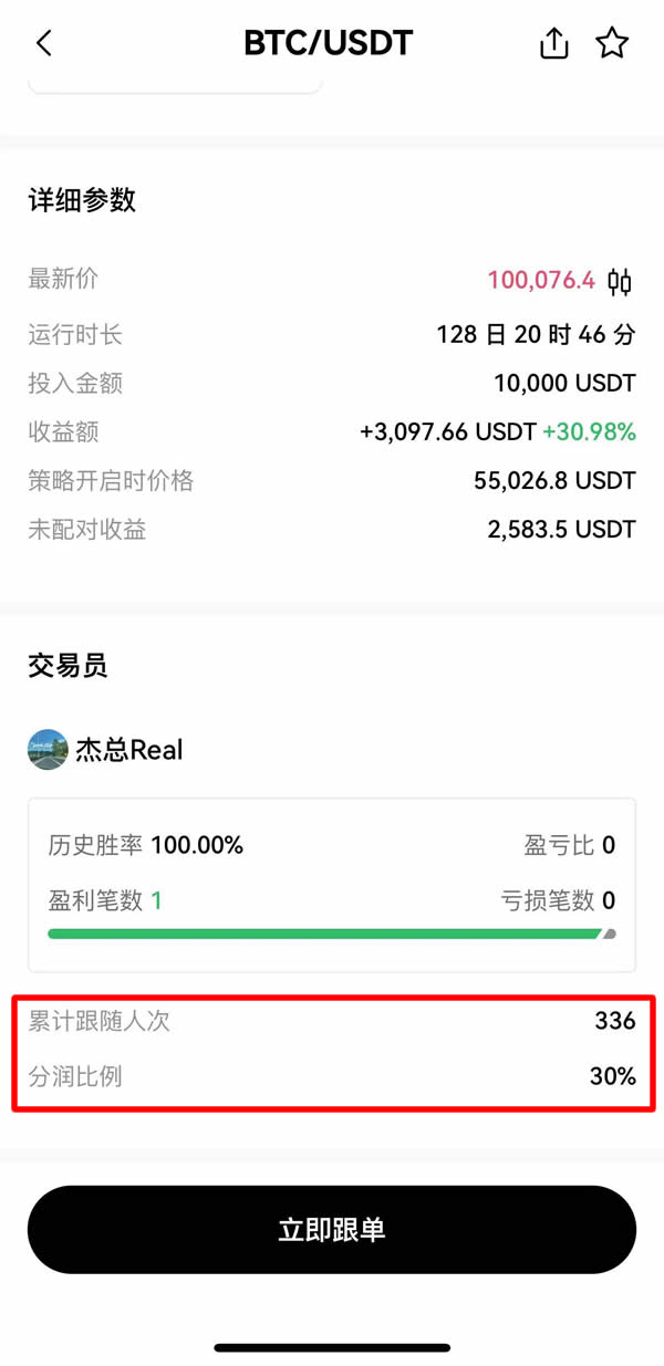 小提醒:有些带单者会设定分润机制,也就是你跟单他们的网格策略赚到钱,要分一些收益给他们,一般都是设定30% 分润。