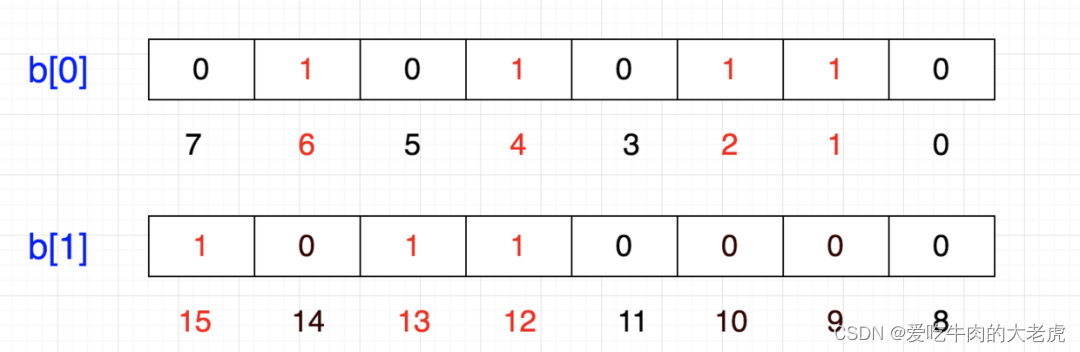 计算机内存分配的最小单位是字节,也就是8位,那如果要表示{12,13,15}怎么办呢,是在另一个8位上表示了: