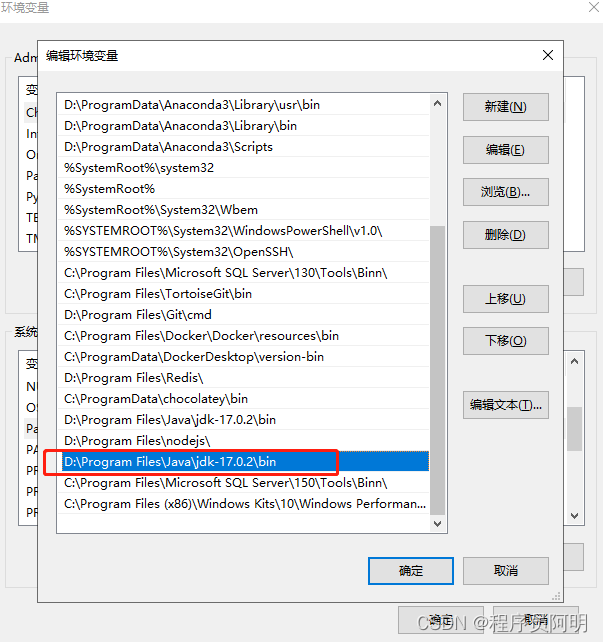 - 2.2、在系统变量配置path,%java_home%\bin,注意必须放在顶部第一位