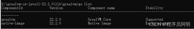 只需在cmd 敲 native-image --version 出现下图就说明已经安装好