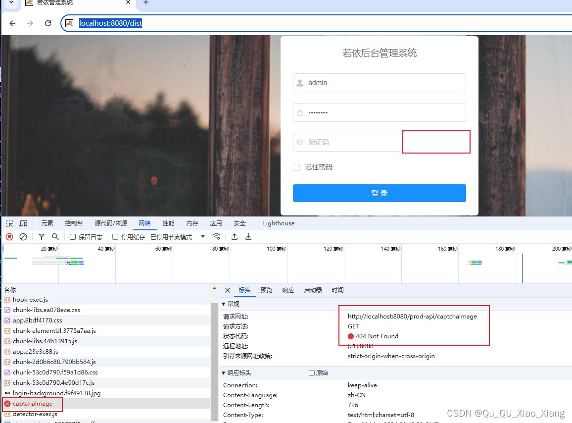 可以清楚看到验证码获取不到,说明前后端无法通信