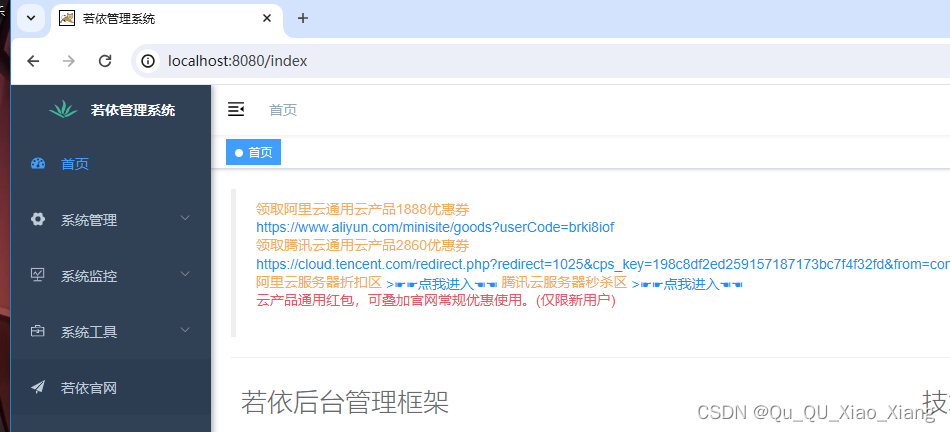 第六步:启动tomcat看效果 访问:http://localhost:8080/ruoyi-admin/