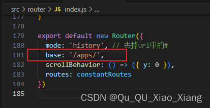 base: '/apps/', // -----------设置这里 和 前端 打包后的包名一直,不一致 等打包成功修改包名