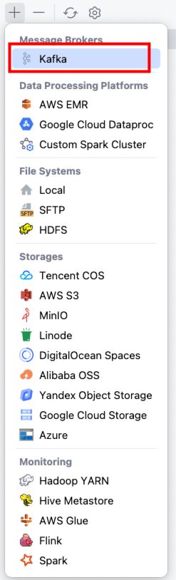 idea 除了支持 kafka 外,还支持其他大数据工具的连接(如 hive、hbase 等),这里选择 kafka。