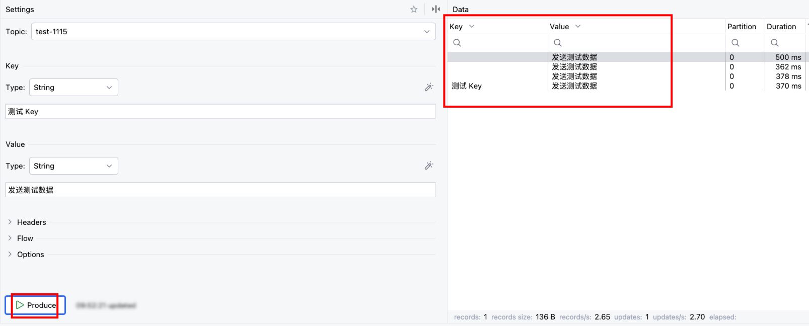 通过 idea 的 kafka 管理工具,可以向指定的 topic 发送数据。