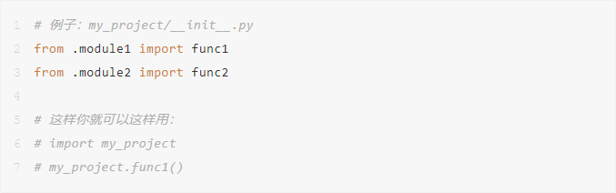 通过在__init__.py中用from .sub_module import some_function的方式,可以直接在import package_name的时候就将所有常用的子模块或者函数导入,这样你就能从包的顶级目录直接访问子模块的内容了: