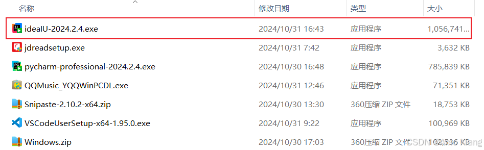 jetbrains 公司提供了两个 idea 版本:旗舰版(ultimate)和社区版(community)。社区版的 idea 是免费的、开源的,但支持的功能相对较少;旗舰版则提供了较多的功能,但是是收费的,只能试用 30 天。学习 javase,使用社区版就够了,如果后期想要进行 javaee 的开发,旗舰版的则更为合适。所以砸门一步到位,本文讲解的是旗舰版(ideaiu-2024.2.4.exe)的 idea,之后 idea 的安装和操作都是基于该版本来演示的。